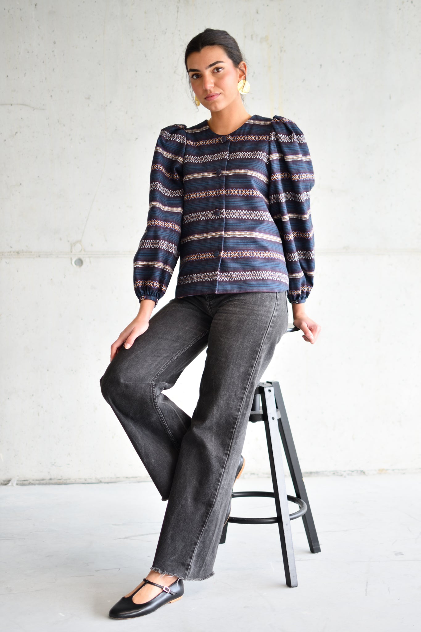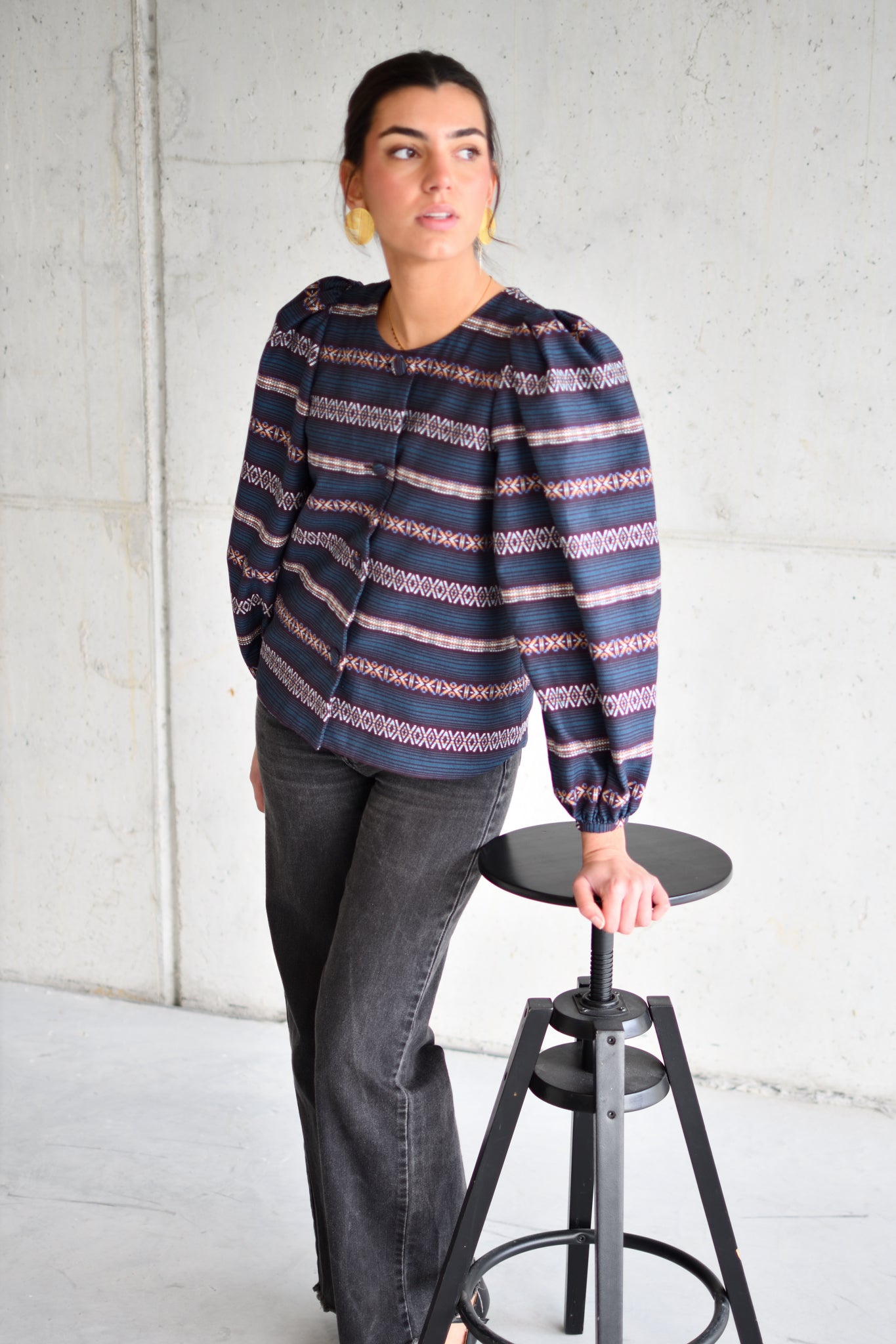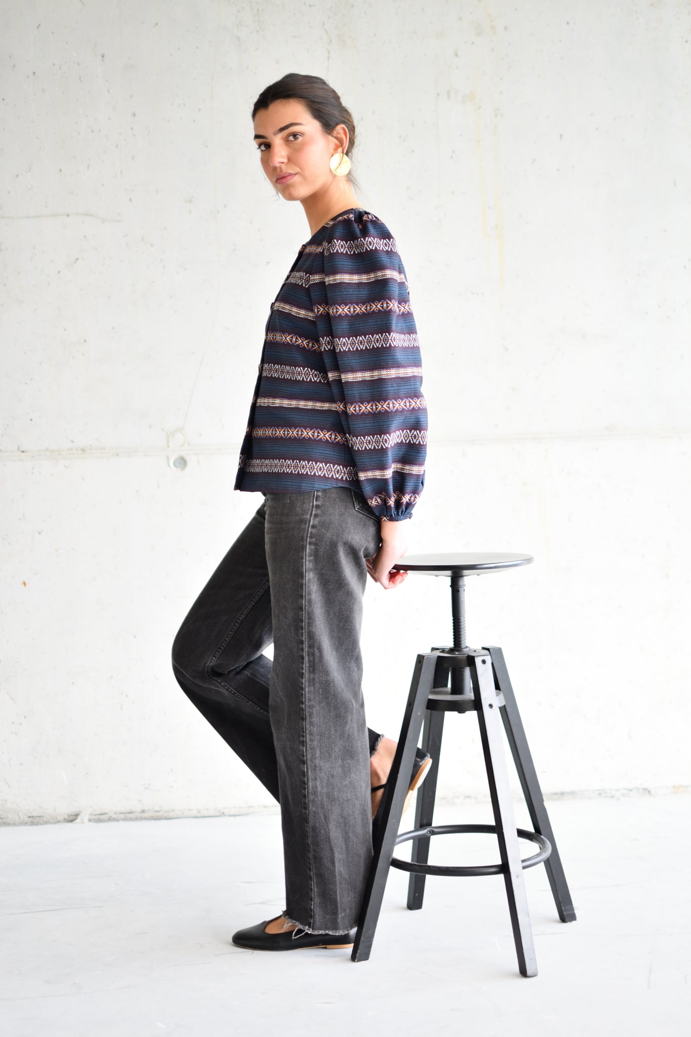 The poplin fabric is very soft to the touch, perfect for any season. Long sleeves with tie-dye cuffs.