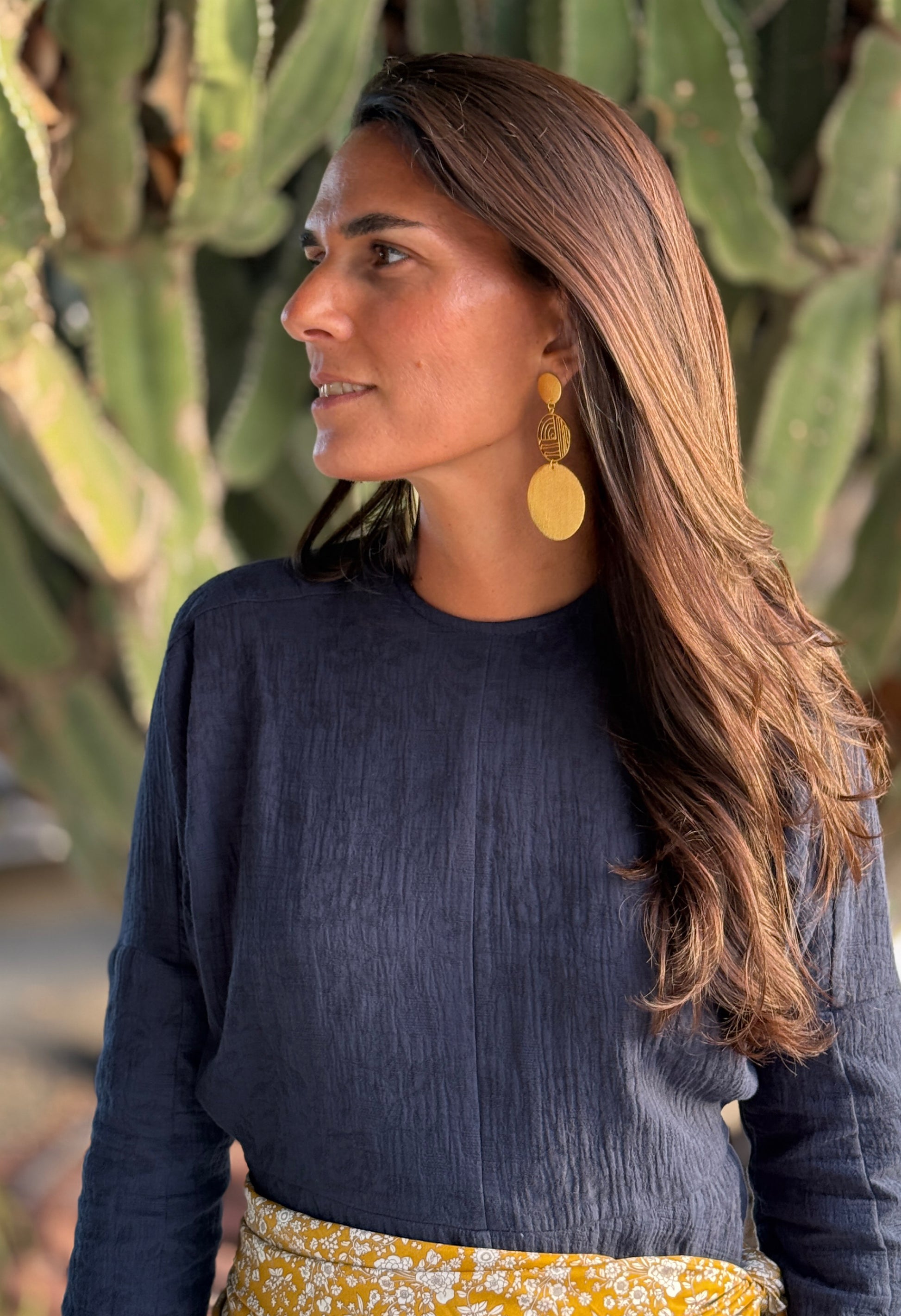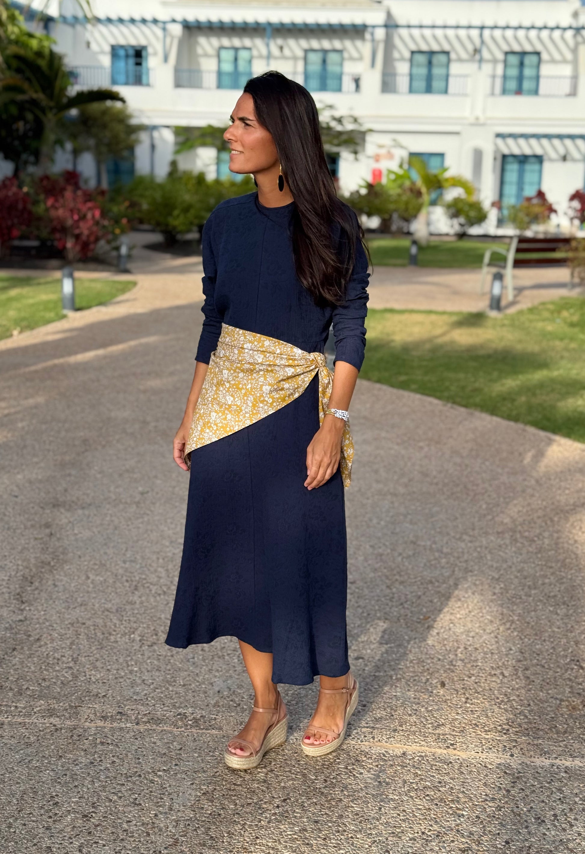 El vestido Geraldine, confeccionado en nuestro Atelier en Galicia en tejido con estampado jacquard de algodón.